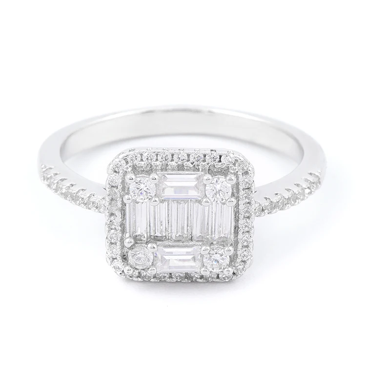 Keiyue Direct 925 Silver CZ Halo Engagement Ring for Women Factory Direct Wedding Party Anniversary Gift
